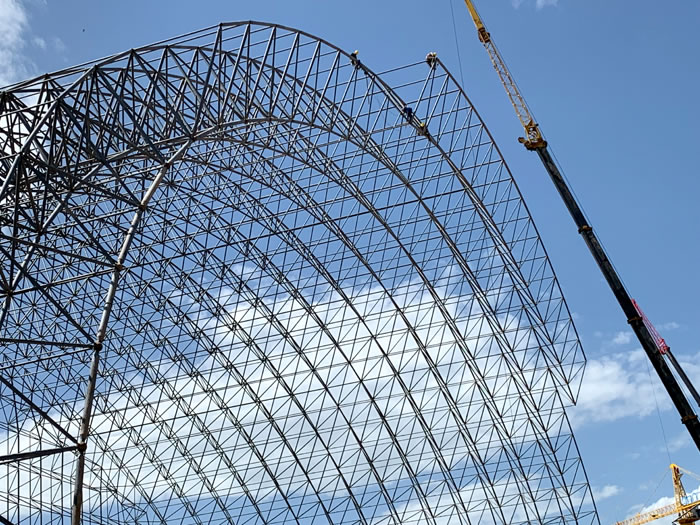 (2)网架加工前应对现场尺寸进行复测,确认无误后方可进行加工、安装;网架制作、运输、安装应遵守《空间网格结构技术规程》JGJ7-2010、《钢网架仪征螺栓球节点》JG/T 10-2009、《钢网架仪征螺栓球节点用高强度螺栓》 GB/T 16939-2016、《仪征钢结构仪征工程仪征施工规范》 GB50755-2012、《仪征钢结构仪征工程仪征施工质量验收标准》 GB50205-2020。